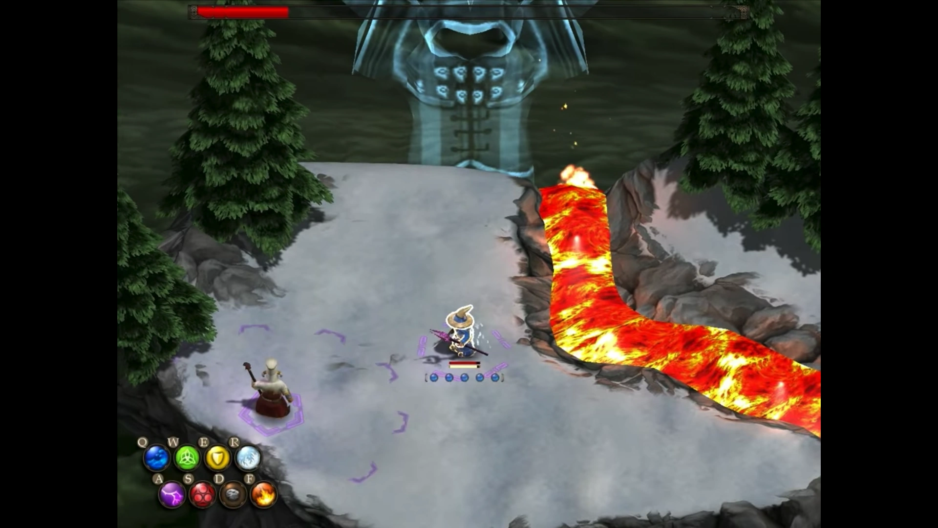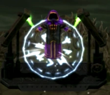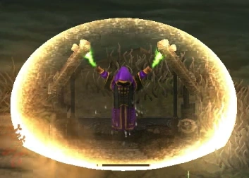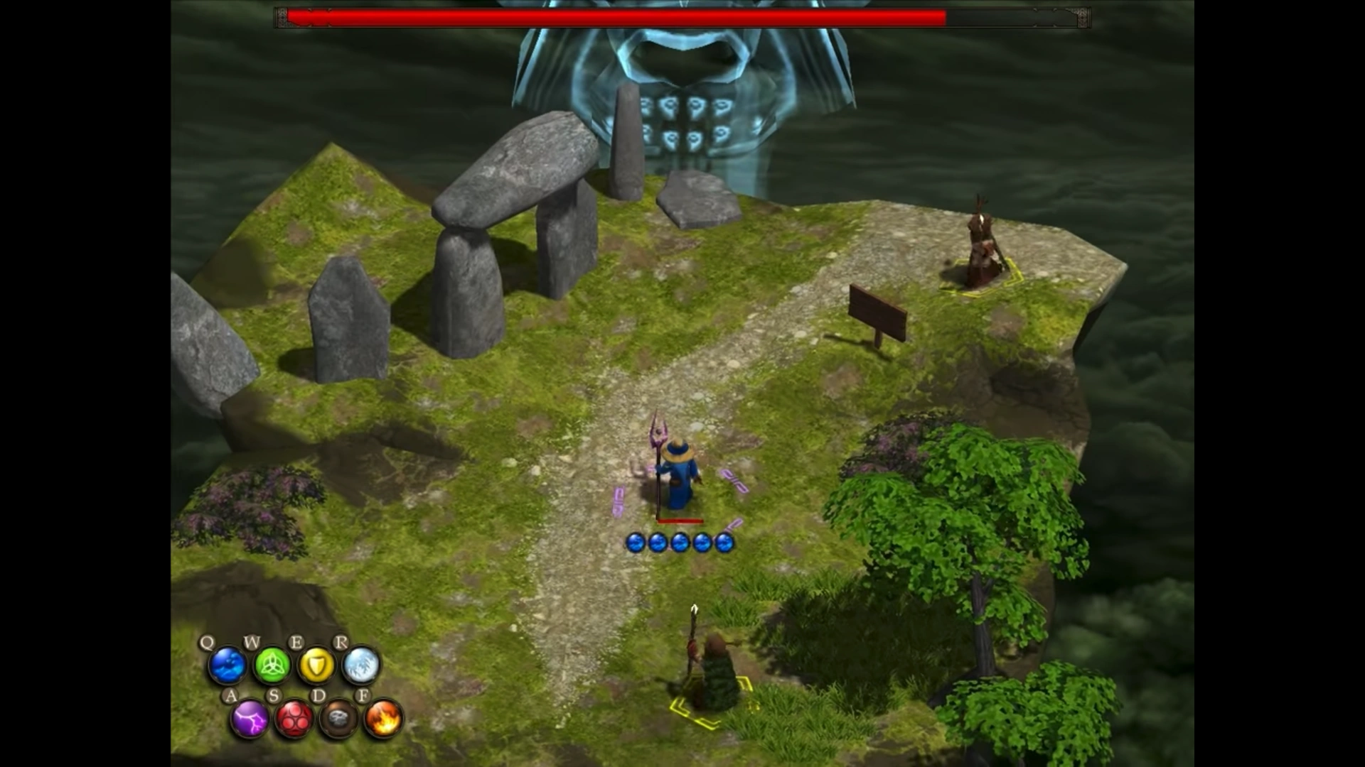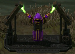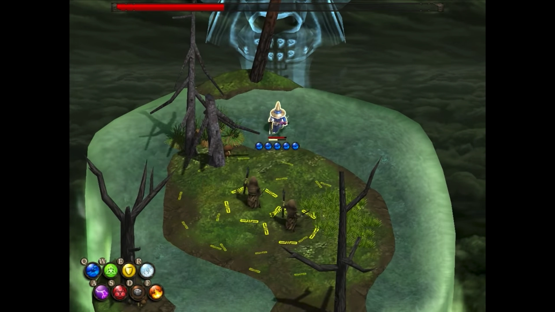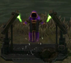 Grimnir will begin the fight by declaring the player will be defeated in a "Mind Duel". The player is then transported to a series of small islands of various settings, with a giant, ethereal Grimnir in the background. Enemy mages of various types will spawn and battle the player, depending on the setting. The player must defeat all the mages to proceed. Using mines (![]()
