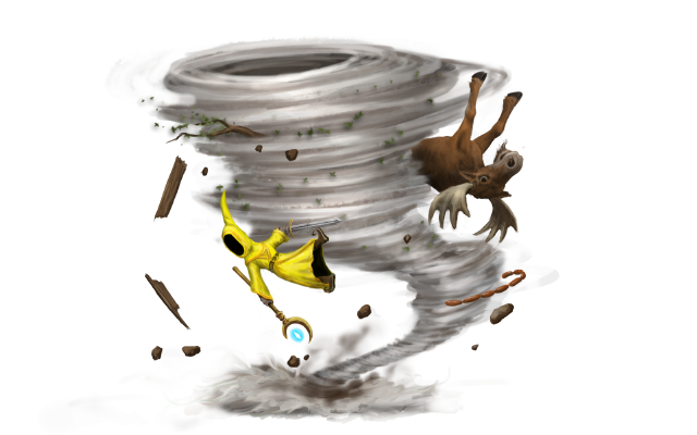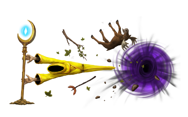 Summons a large vortex that sucks in and crushes anyone careless enough to wander close. The vortex will increase in area of influence as more objects are sucked in, to a limit. It will shrink over time and then vanish if nothing is sucked into a fullsize vortex for 10 seconds. | Chapter 12: Given to you after defeating the final boss. |