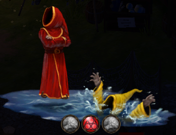 Levitates two similar entities and smashes them into one another, instantly killing one. The unusual combination of water and lightning requires the player to combine steam and cold or ice and fire to produce the water element safely. | Present but inaccessible through normal play. |